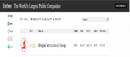 67日,美国《福布斯》杂志发布了2018年“全球上市公司2000强”排行榜(Forbes Global 2000)。彩神国际集团有限公司(01044.HK)以销售额29亿美元、利润5.62亿美元、资产60亿美元、市值106亿美元列位榜单1755名。